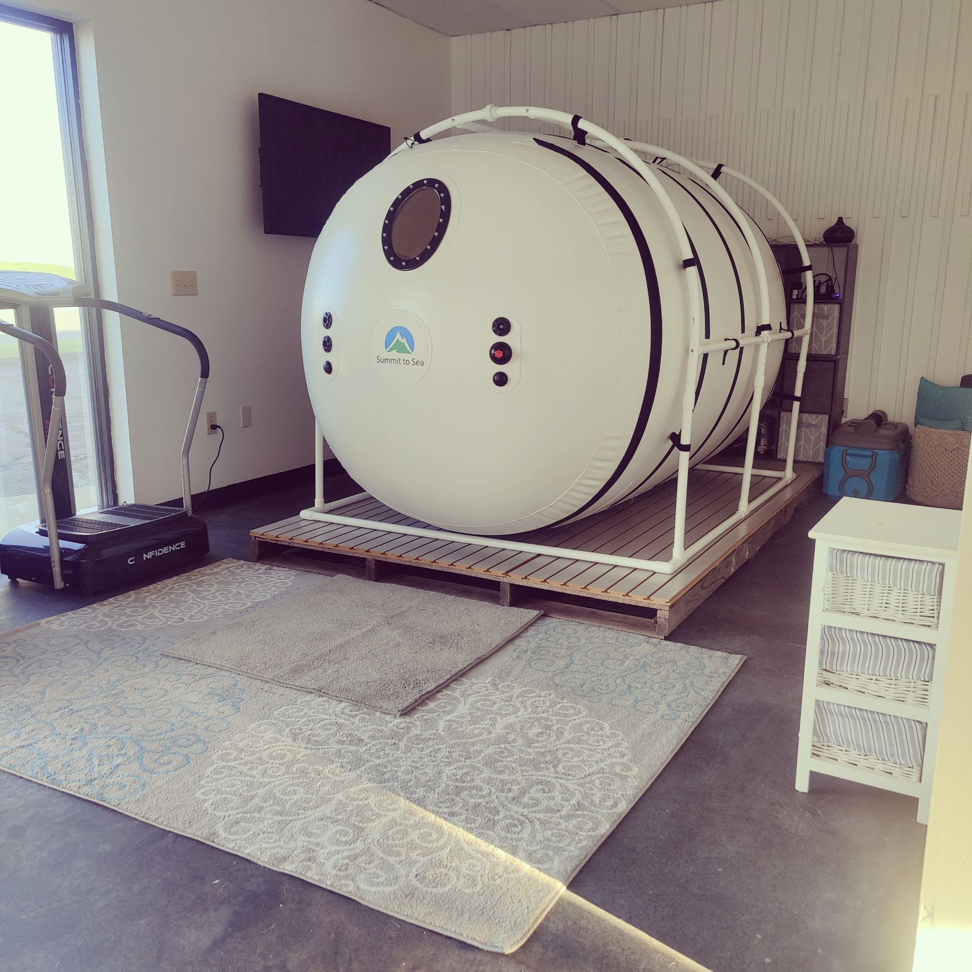 Patients breathe pure oxygen while inside the chamber.